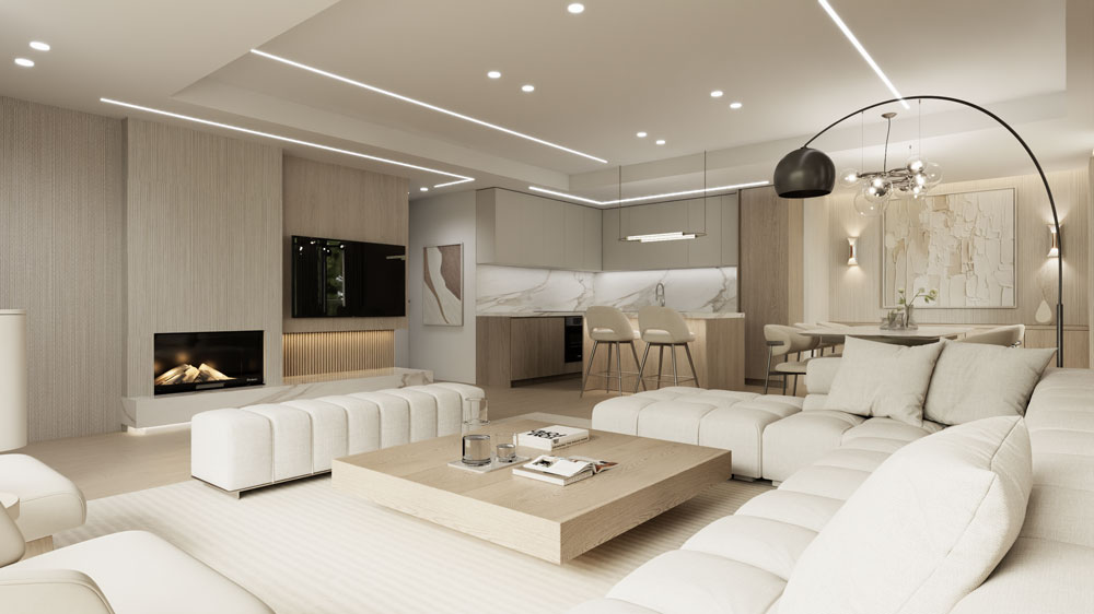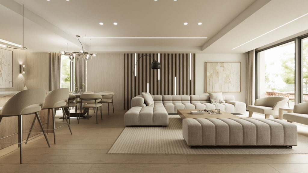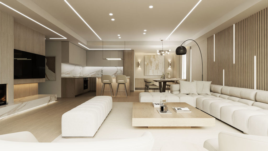 Με συνολικό εμβαδό 123,1 τετραγωνικών μέτρων, το διαμέρισμα ενσωματώνει τη λειτουργικότητα ενός σύγχρονου αστικού loft με τη ζεστασιά ενός κατοικείν προσανατολισμένου στην ποιότητα ζωής. Η εσωτερική διαρρύθμιση περιλαμβάνει τρία υπνοδωμάτια, εκ των οποίων το κύριο διαθέτει ιδιωτικό λουτρό και προσωπική ζώνη απομόνωσης. Το διαμέρισμα διαθέτει επιπλέον ένα πλήρες λουτρό και ένα WC επισκεπτών.